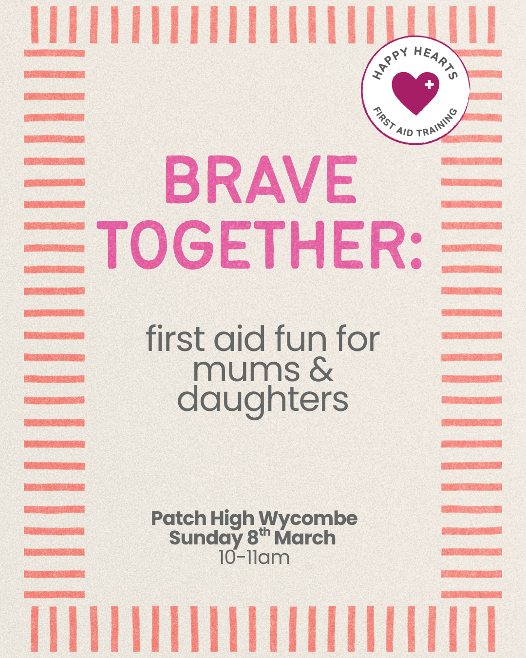 This relaxed and empowering session is all about learning practical first aid skills side by side- in a way that feels supportive, not scary.